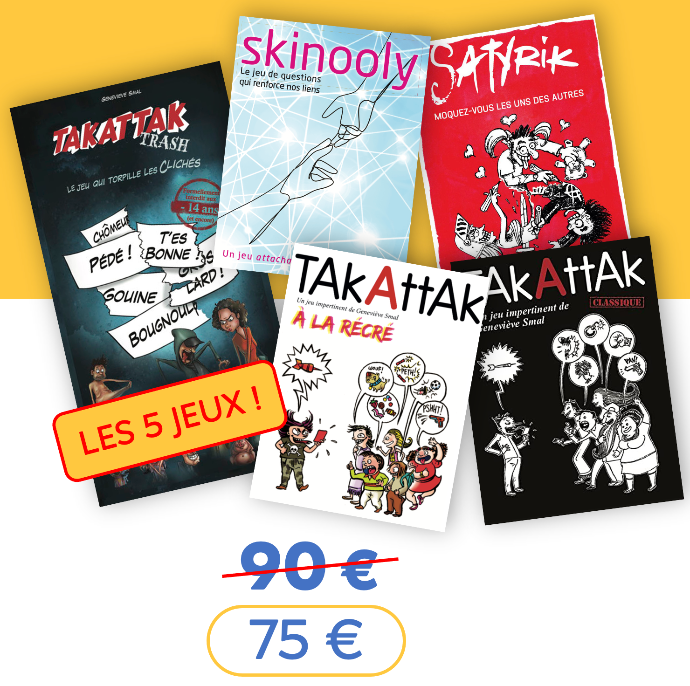Des jeux pour prendre confiance en soi, se défendre du harcèlement, s'entrainer à la répartie, et mieux communiquer : Takattak Satyrik Skinooly...